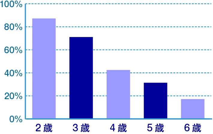 お子さまの年齢別のおねしょ率